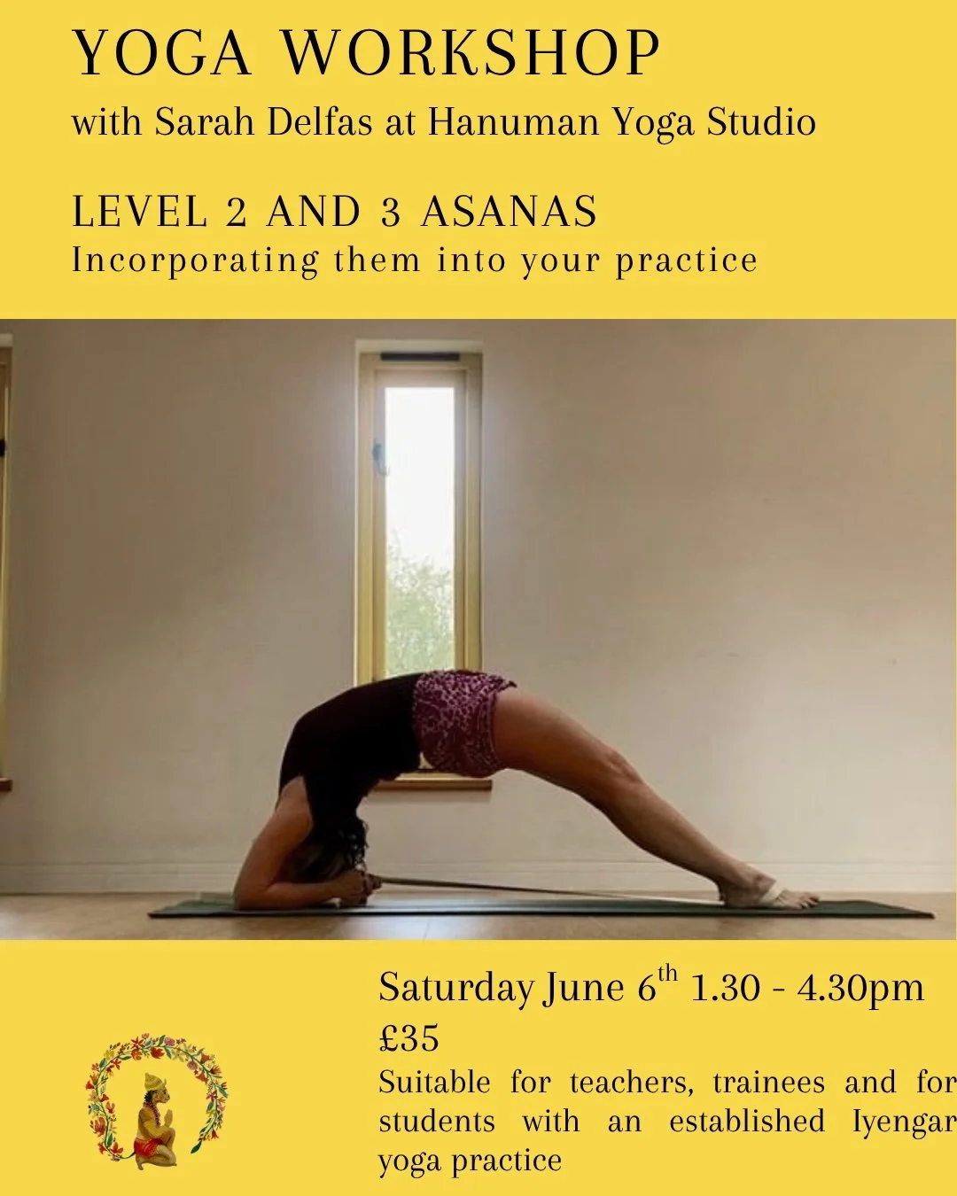 Find a regular class Workshops New students please register here Iyengar Yoga classes in a beautiful, fully equipped studio in Sharpthorne, mid Sussex Coming up soon at Hanuman Yoga Studio